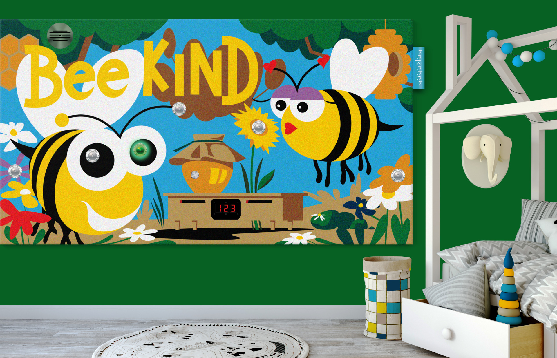 A yagaplay™ játszófal az általunk forgalmazott MANGALAWN™ falburkolatból készül, egy puha tapintású, speciális szálszerkezetű anyagból, mely egészségre ártalmatlan és újrahasznosítható. A burkolat 15 ragyogó színben készül, aminek köszönhetően különböző történeteket hozunk létre, az egyes színekből kivágott minták segítségével.